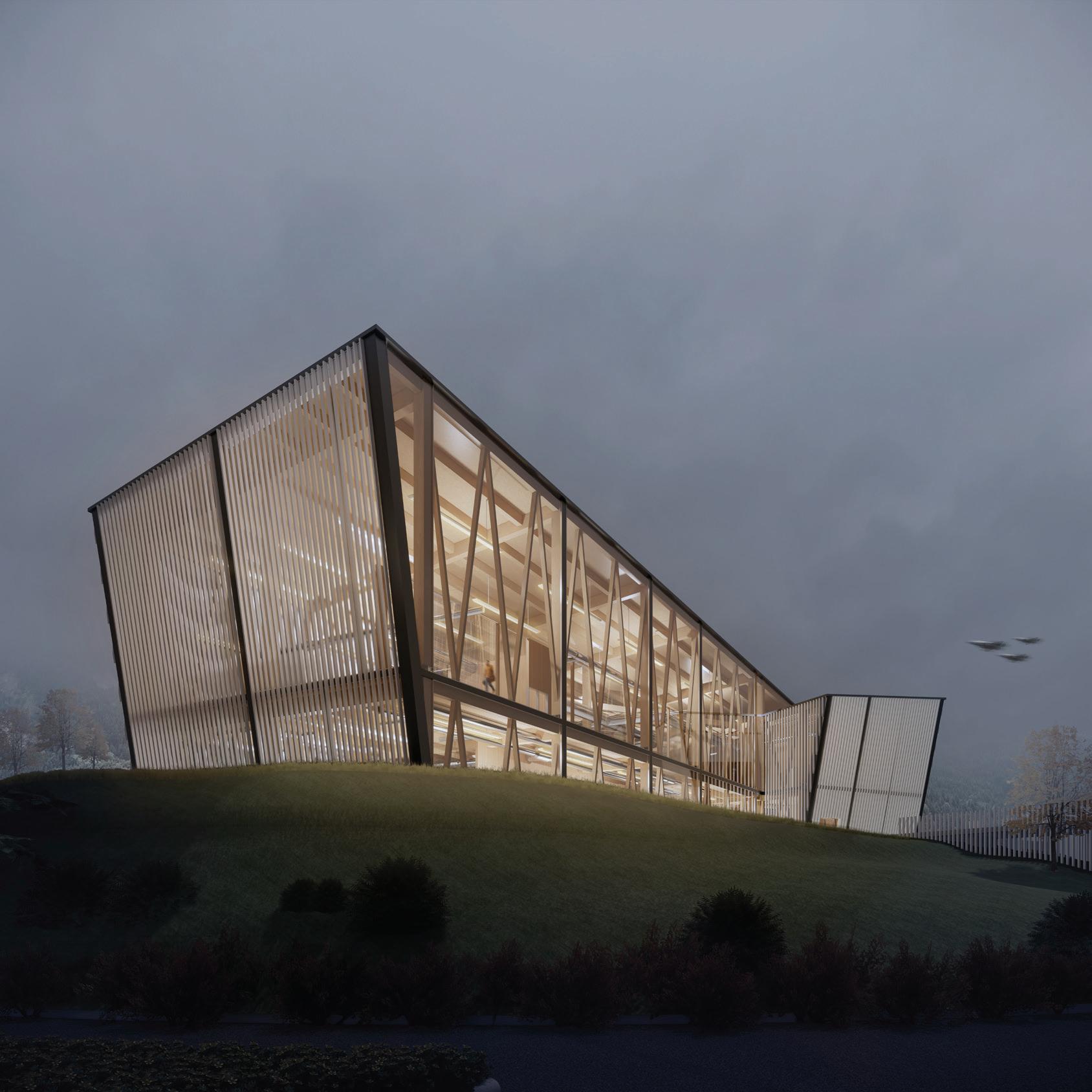 Located just 10 minutes North of Colorado Springs, our proposal presents a modern, stripped down design of three intersecting masses constructed of mass timber. Our design addresses the United States Air Force Academy’s need for a revamped visitor center through a design that celebrates the ideas of axis and intersection.