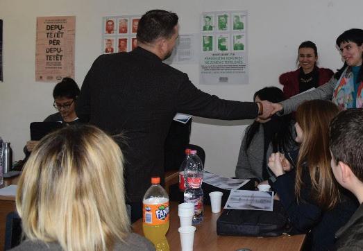Z. / Mr. Marenglen Kasmi, Anëtar i Autoritetit / Member of the Authority; Znj. / Mrs. Kristina Millona, Gazetare / Journalist; Znj. / Mrs. Ornela Arapi, Autoritet / Authority dhe/and student / students