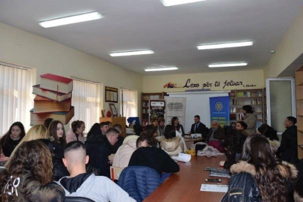 Znj. / Mrs. Gentiana Sula, Kryetare e Autoritetit / Chairwoman of the Authority; Znj. / Mrs. Kristina Millona, Gazetare / Journalist; Staf i Autoritet / Staff of the Authority dhe/and student / students