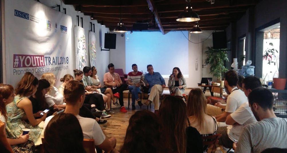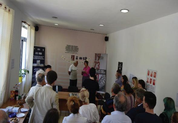 Z. / Mr. Roland Qafoku, Gazetar / Journalist; Znj. / Mrs. Etleva Demollari, Muzeu Shtëpia me Gjethe / Museum “House of Leaves”; Znj. / Mrs. Ardiana Topi, Autoritet / Authority; Znj. / Mrs. Edlira Agolli, Prezenca e OSBE në Tiranë / Presence of OSCE in Tirana