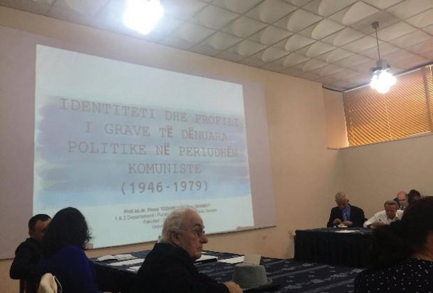 Profesorë, studiues të projektit studimor: Znj. / Mrs. Nevila Nika, Historiane / Historian; Z. / Mr. Shaban Sinani, Akademik / Academic; Z. / Mr. Christoph Graf, Ambasador i Zvicrës / Ambassador of Switzerland; Znj. / Mrs. Gentiana Sula, Kryetare e Autoritetit / Chairwoman of the Authority; Znj. / Mrs. Floresha Dado, Akademike / Academic; Z. / Mr. Martin Dietz – PERFORM; Znj. / Mrs. Sonila Boçi, Historiane / Historian