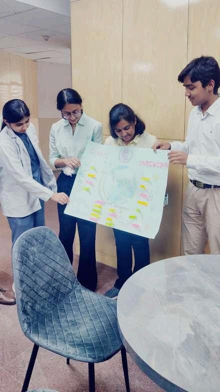 The workshop concluded with a poster-making event, aimed to summarize the minutes of the conference in an easy-to-grasp, pictorial and informative manner The systemic issues faced due to climate change and the rise in global temperatures were depicted Corresponding solutions that came up in the conference after each presentation were also mentioned These included proper waste management, using alternative energy sources and so much more The solutions ranged from an individual to a global level The chart also involved some fun artistic elements depicting the global change before and after implementing the solutions Finally, the posters were presented and explained to the faculty C H A R T 2