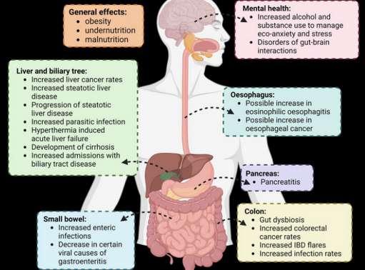 When we consider the effects of climate change on human physiology, the cardio-respiratory system comes to mind as the primary victim, but its effects on the gastrointestinal(GI) system are also emerging as a significant area of concern From altering water quality to intensifying foodborne illnesses, its effects on GI health are both immediate and far-reaching