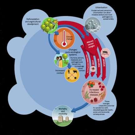 Climate change amplifies the complexity of infectious disease dynamics by altering ecological systems, disrupting natural balances, and exacerbating health disparities Climate change poses significant challenges for microbial epidemiology by altering their interactions with hosts, vectors, and the environment, ultimately impacting human health and disease outcomes