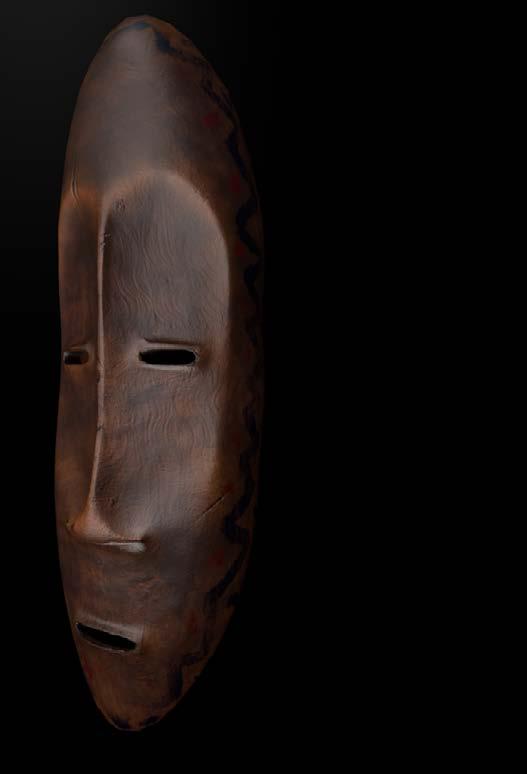 The mask is coloured with materials such as charcoal, mineral pigments and caolin (a powdered clay material)