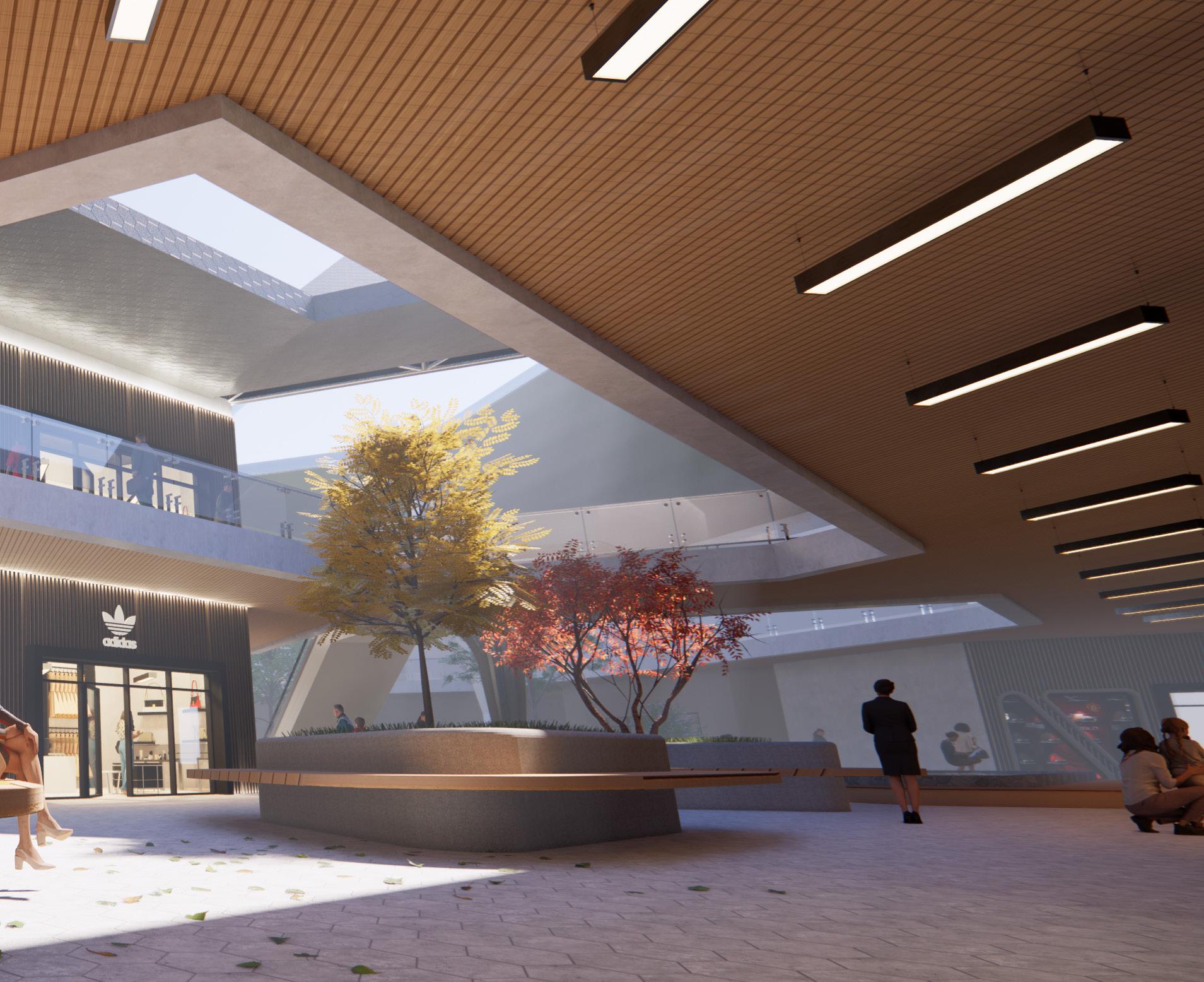 Premium outlets as an distraction place for consumer. Variying level of public circulation and greenery space that create a palce to socialise. Connect people with nature Spaces for people that can help shape their day-to-day experience. Circulation inside the building coming from every angle.