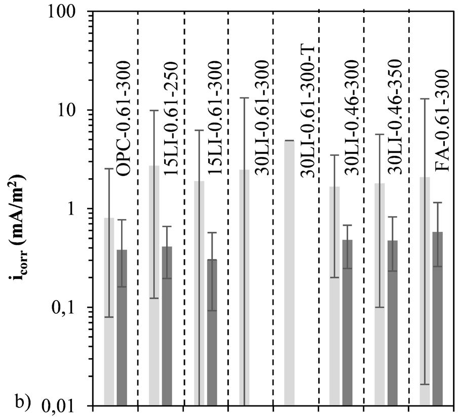 Corrosione a lungo termine di armature di acciaio in calcestruzzi carbonatati con diverse composizioni
