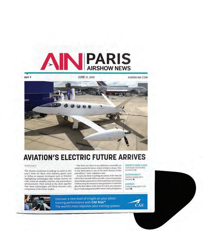 Aviation International News is a publication of AIN Media Group, 214 Franklin Ave., Midland Park, NJ 07432; Tel.: +1 (201) 444-5075. Copyright © 2023 All rights reserved. Reproduction in whole or in part without permission of The Convention News Co., Inc. is strictly prohibited. The Convention News Co., Inc. publishes Aviation International News, AINalerts, AIN Air Transport Perspective, AINtv, Business Jet Traveler, BJTwaypoints, ABACE Convention News, Dubai Airshow News, EBACE Convention News, Farnborough Airshow News, FutureFlight.aero, HAI Convention News, LABACE Convention News, MEBAA Convention News, NBAA Convention News, Paris Airshow News, Singapore Airshow News, Mobile Apps: Aviation International News; AINonline. PUBLICATION MAIL AGREEMENT NO. 40649046 RETURN UNDELIVERABLE CANADIAN ADDRESSES TO: PITNEY BOWES INTERNATIONAL MAIL, STATION A, P.O. BOX 54, WINDSOR, ON, N9A 6J5, returns il@imex.pb.com.