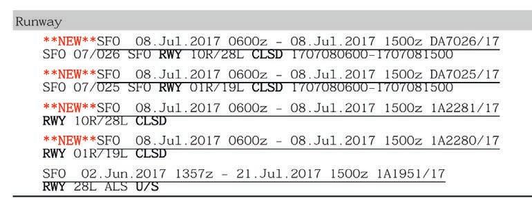 After all of these less urgent notams, the Runway section listed five notams that looked like the image on the next page.
