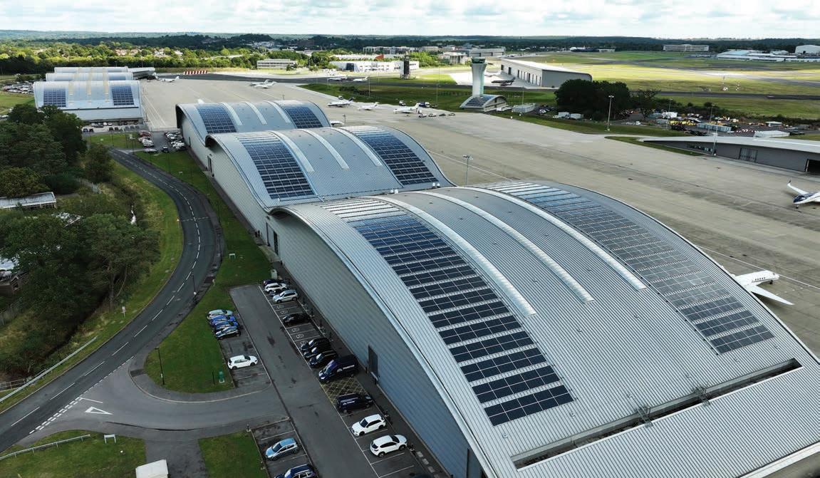 Last year, specialist supplier Solivus installed solar panels on the hangar roofs at the London-area business aviation hub Farnborough Airport. These are now meeting around 25% of the facility’s power