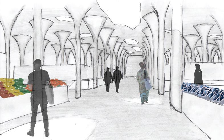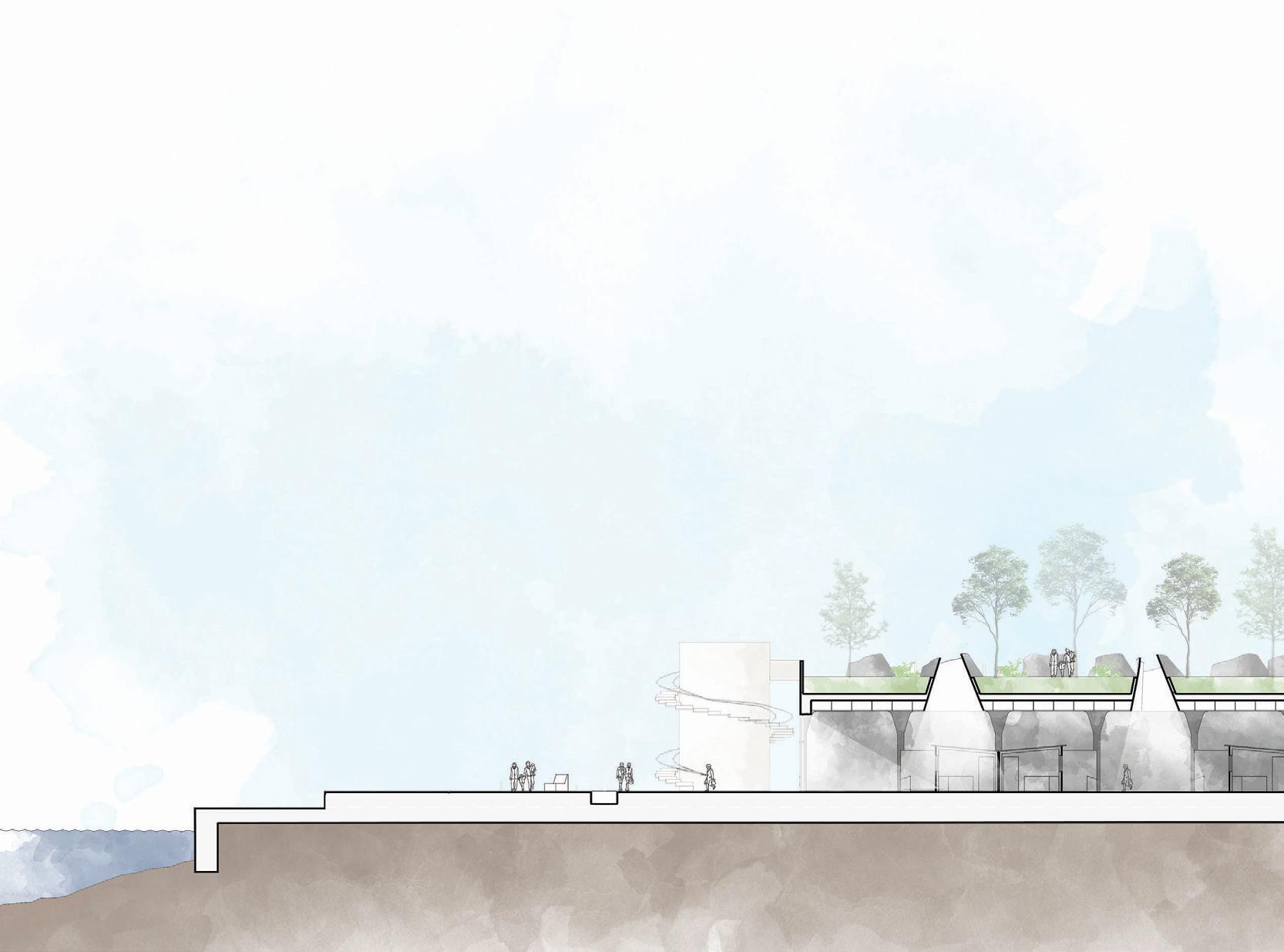 En las proximidades del barrio de Tamburi, en Taranto (Italia), detrás de los almacenes del puerto y de una vía férrea abandonada, se alza un frente marítimo abandonado por la ciudad. Este proyecto tiene por objeto repensar este lugar para convertirlo en un paseo verde contrarrestando al mismo tiempo el fenómeno de contaminación instalado en la zona. Los diferentes programas se despliegan desde abajo hacia arriba, aprovechando la topografía del lugar. Así, el mercado subterráneo queda cubierto por un paseo vegetal que da acceso a una nueva estación de tranvía que se cubre a su vez con una explanada de restaurantes. Cada espacio está iluminado por entradas de luz que sobresalen a la superficie y son empleadas como mobiliario urbano.