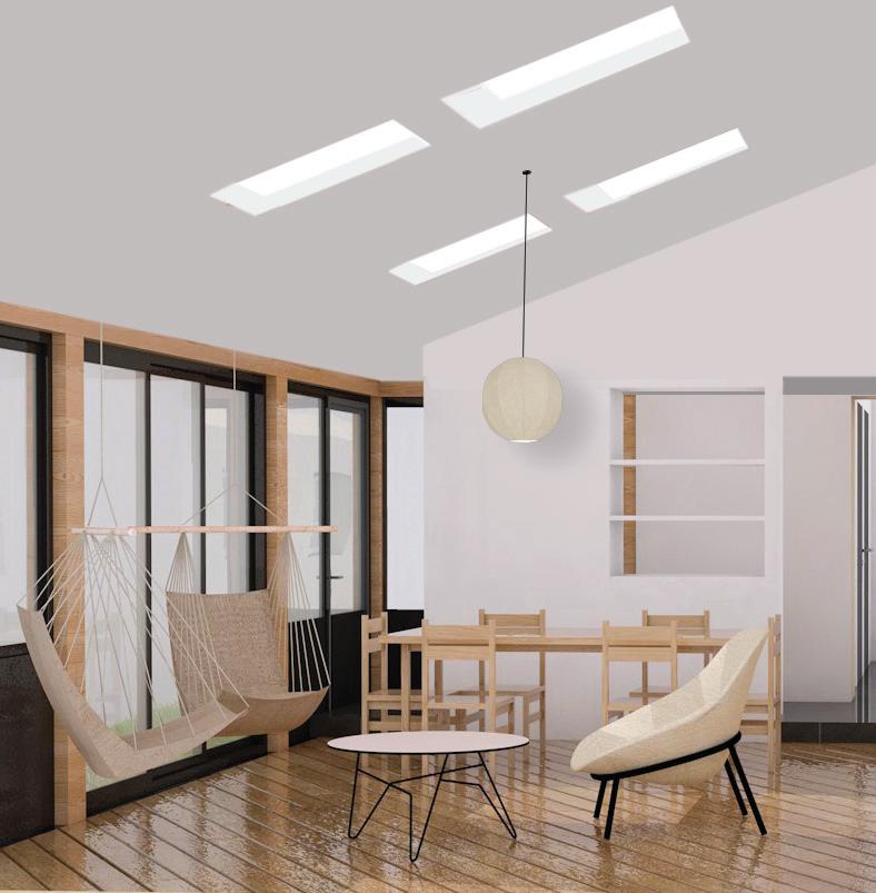 El proyecto de reforma de la casa del Petit Châtaignier (castaño pequeño) tenía como proposito transformar el espacio de vida principal de una casa rural, para una familia de cuatro personas. El espacio ha sido tratado con volúmenes abiertos y tonos naturales, con una intención de crear un diálogo entre el interior y el jardín exterior. Bajo la veranda renovada, se distinguen varios espacios. Un volumen vertical claro, que incorpora un armario, divide el espacio y delinea una entrada. Las aperturas del volumen aseguran la transversalidad de la habitación, ofreciendo puntos de vista alargados entre el vestíbulo y el salón. Las luceras en el techo existente proporcionan luz natural a todo el espacio. Un juego de alturas de techo permite distinguir un pasillo que recorre el salón y conduce a las habitaciones de la casa. Al otro lado, un pequeño bar ofrece un segundo espacio de vida, con una cocina abierta sobre la sala.