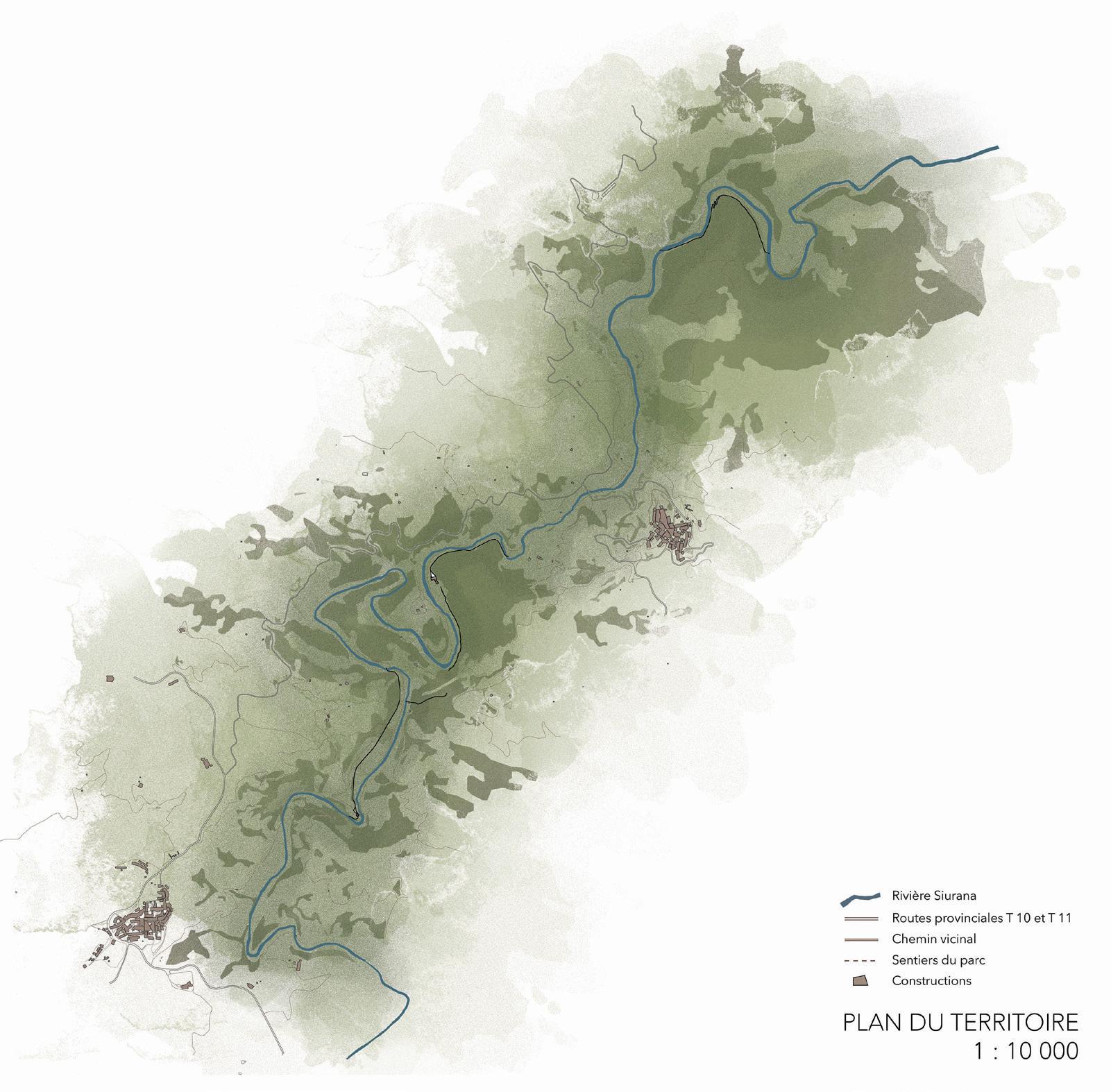 En la pequeña región rural del Priorat, en medio de las montañas catalanas, un río y sus riberas llevan décadas secándose. La construcción de una presa en los años 60 provocó una degradación progresiva de las riberas del Siurana, amenazando la biodiversidad y el ecosistema del río. Frente a dicha situación alarmante, este proyecto propone una nueva alternativa de gestión y desarrollo en torno al río, para que vuelva a convertirse en una riqueza para la región. Partiendo de la base de que las autoridades de la presa permitan liberar un caudal de agua suficiente, el proyecto propone la creación de un parque natural aprovechando los molinos hidráulicos abandonados presentes en el lugar, junto con sus propiedades agrícolas. Cada molino contiene un programa relacionado con la formación, la comercialización o la sensibilización en torno a la agricultura y el medio ambiente. Para ello, se realizarían una serie de intervenciones arquitectónicas y paisajísticas alrededor de los molinos, cuyos edificios originales se verían complementados con nuevas estructuras de madera y vidrio energéticamente eficientes. Estas «microcirugías» generarían así una transformación paisajística a escala «macro», mediante la puesta en funcionamiento del sistema de canalización y riego de los molinos.