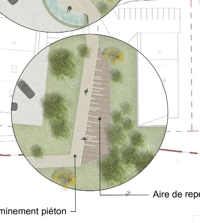 On the outskirts of Paris, the peri-urban area of the commune of Montigny-le-Bretonneux is in need of revitalization. This project proposes the creation of a commercial complex that will house retail spaces and offices, with the aim of boosting the area and giving new economic impetus to the territory. The juxtaposition of various façade claddings gives the complex a dynamic appearance, with each business standing out from the others. The contrast between the industrial look of metal and the natural feel of wood gives the project an innovative character, integrating it into its surroundings. The offices, located on the upper floors, feature private outdoor spaces accessible to users and adorned with green walls. Within the site, the landscaping of the outdoor spaces ensures smooth circulation along a green pathway. The different pavilions are connected by interstices and treelined paths, where urban furniture creates gathering spaces around ponds and regenerated micro-forests on the site.