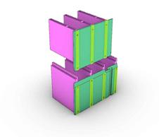 • Megapanels and infill panels at each level are supported off the same slab, allowing for simpler transition between systems