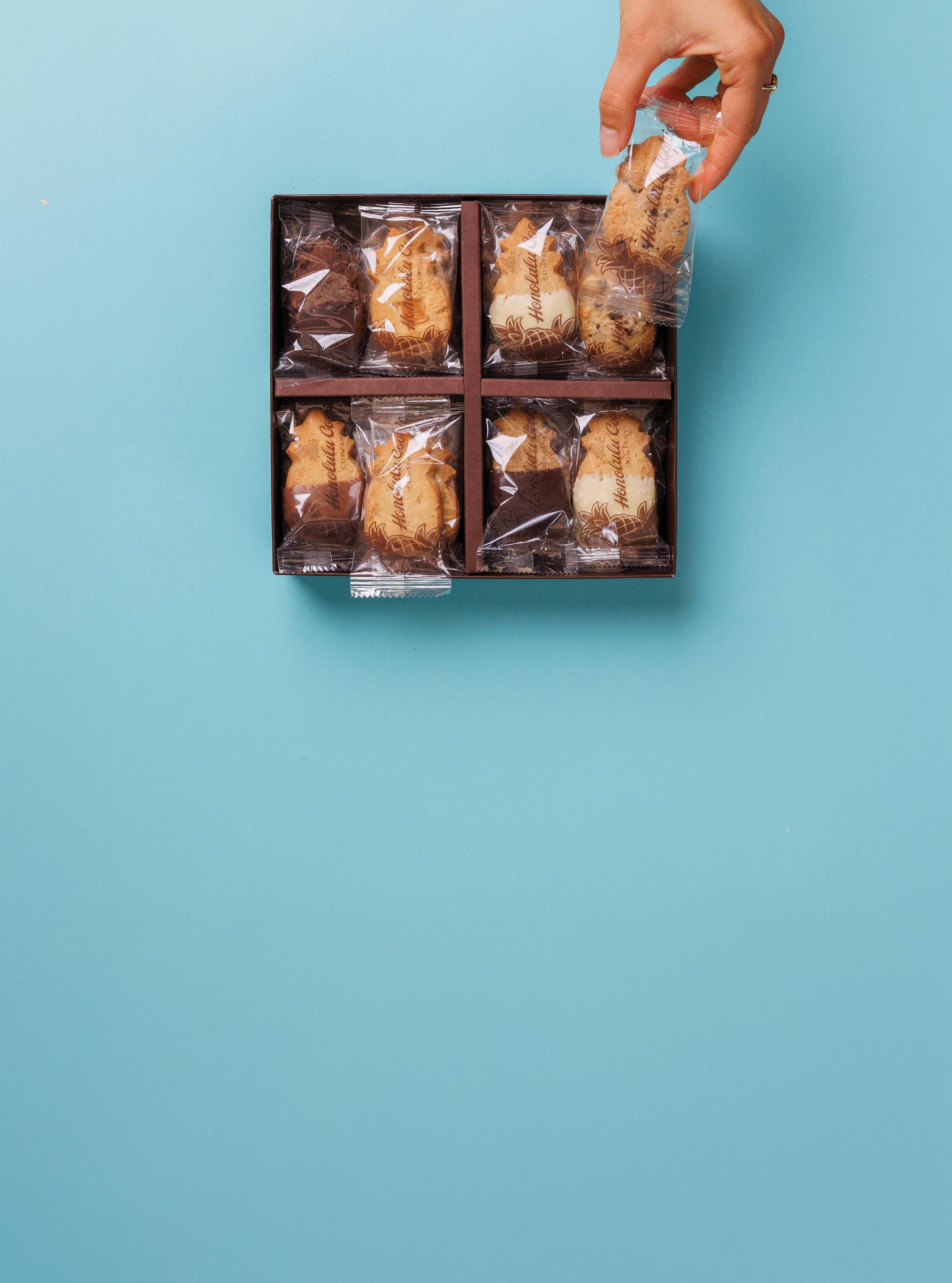 Wrapped and ready to impress, gift a taste of aloha with pineapple-shaped premium shortbread cookies in Island-inspired flavors like pineapple, coconut, guava and more. $110 honolulucookie.com