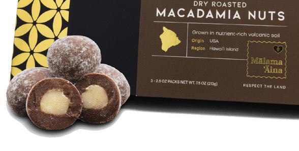 These crunchy Hawaiian macadamia nuts, coated in velvety milk chocolate, are the perfect gift from Hawai‘i to share with loved ones. $14.99 hamakuamacnut.com