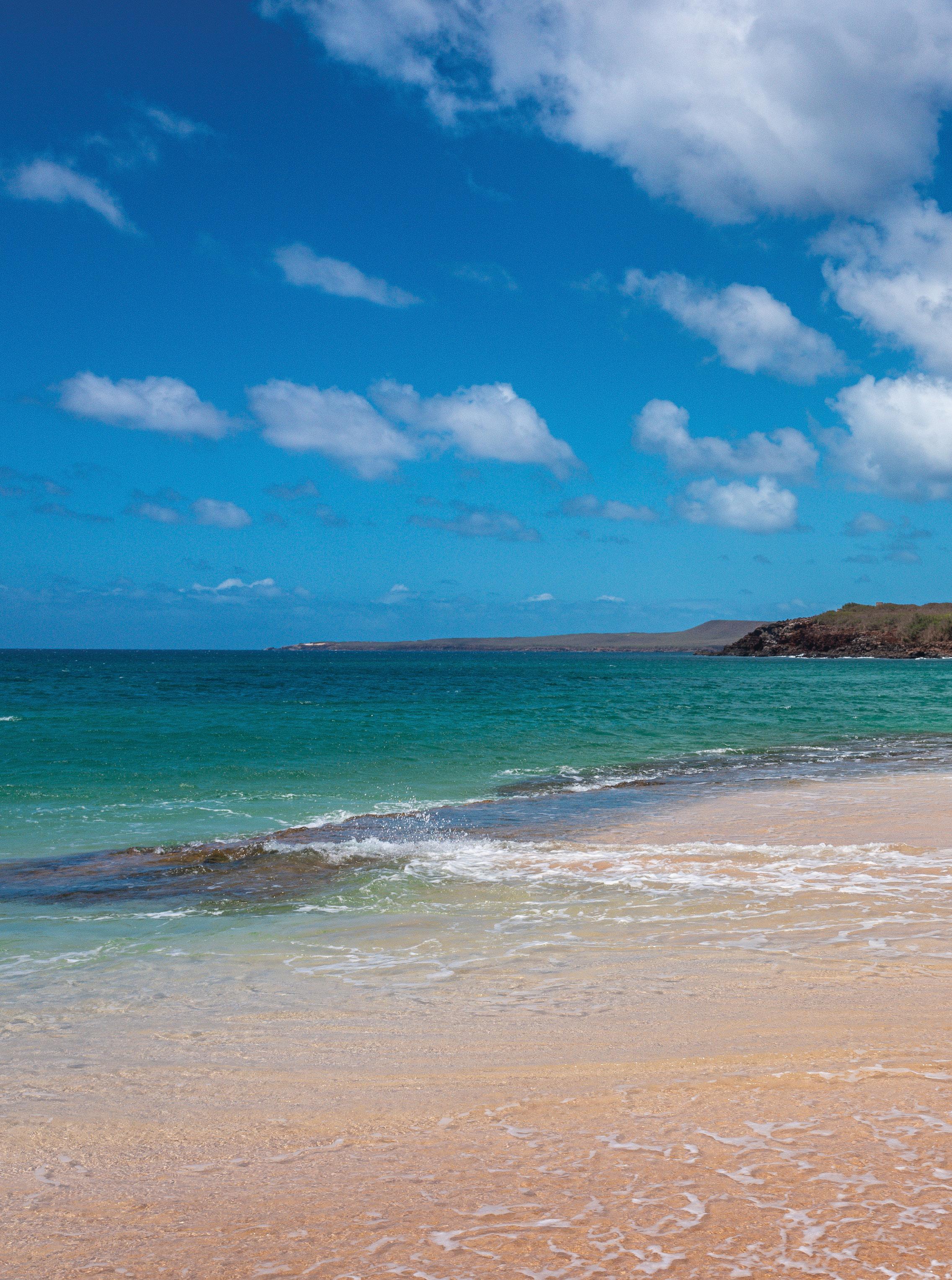 HERE, MILES OF PRISTINE WHITE SAND meet the Pacific and in the distance, a speck of O‘ahu appears across the Kaiwi Channel. There’s no soul in sight. Sitting on Moloka‘i’s quiet west end, Pāpōhaku Beach is 3 miles long and 100 yards wide, earning its place as one of Hawai‘i’s largest and most breathtaking beaches.
