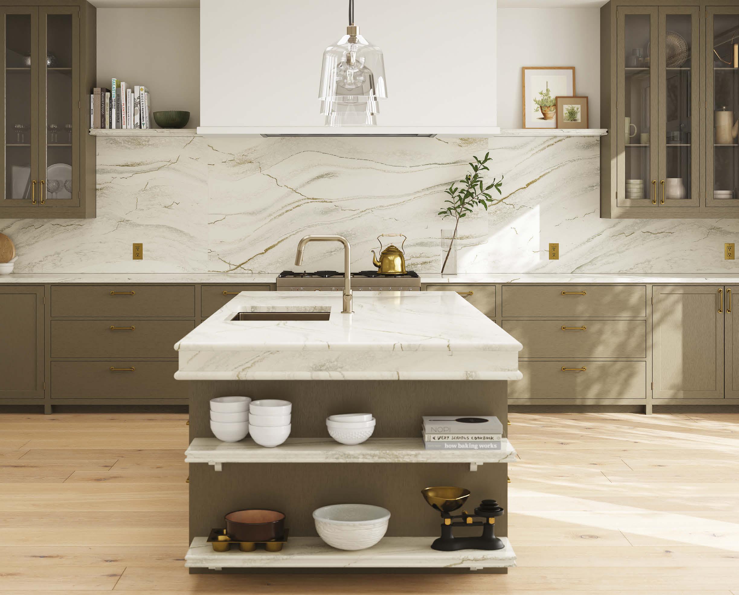 above: Ambra carved standstone dimensional tile by Artistic Tile is a striking choice for the kitchen backsplash, and one of Bella Pietra Design’s most popular selections. It’s shown here in the gris colorway.