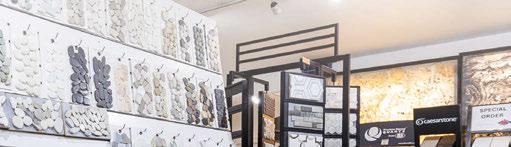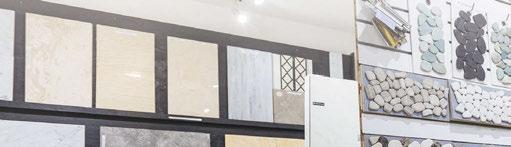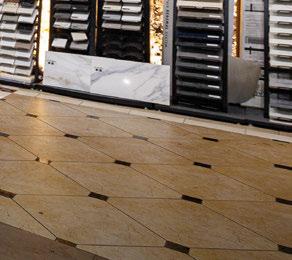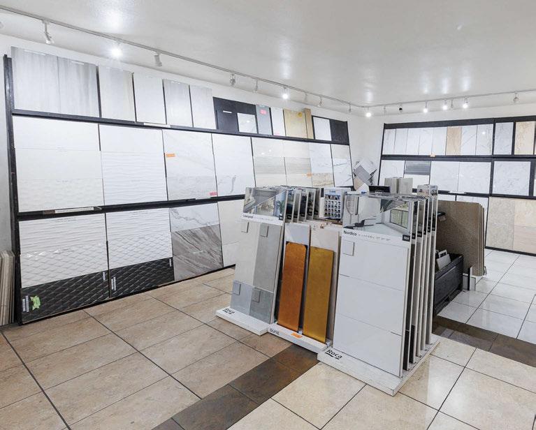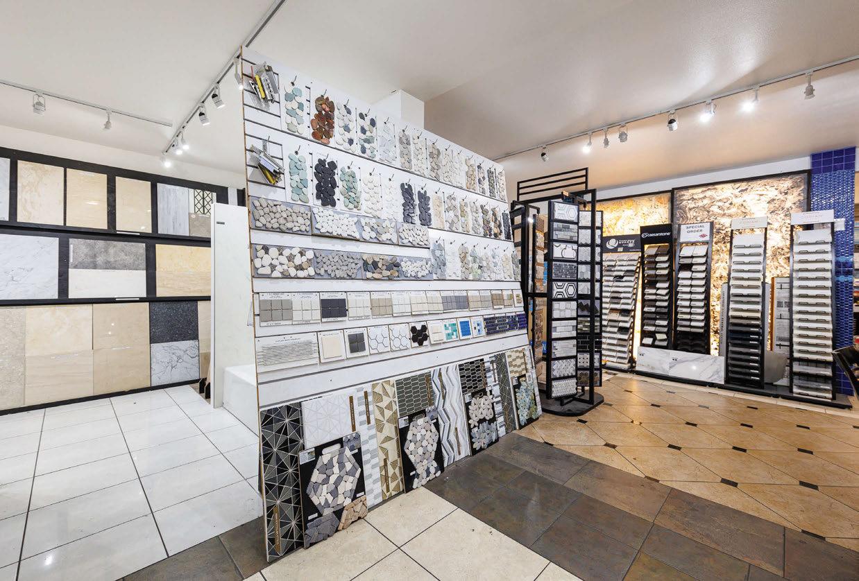right: In addition to its industry-leading inventory of prefabricated engineered quartz, Selective Stone also has a section in its showroom dedicated to flooring and wall tiles in porcelain and natural stone (shown here). Customers can speak with knowledgeable staff to learn more about the best options for their projects.