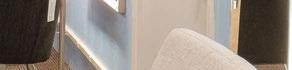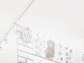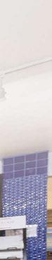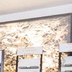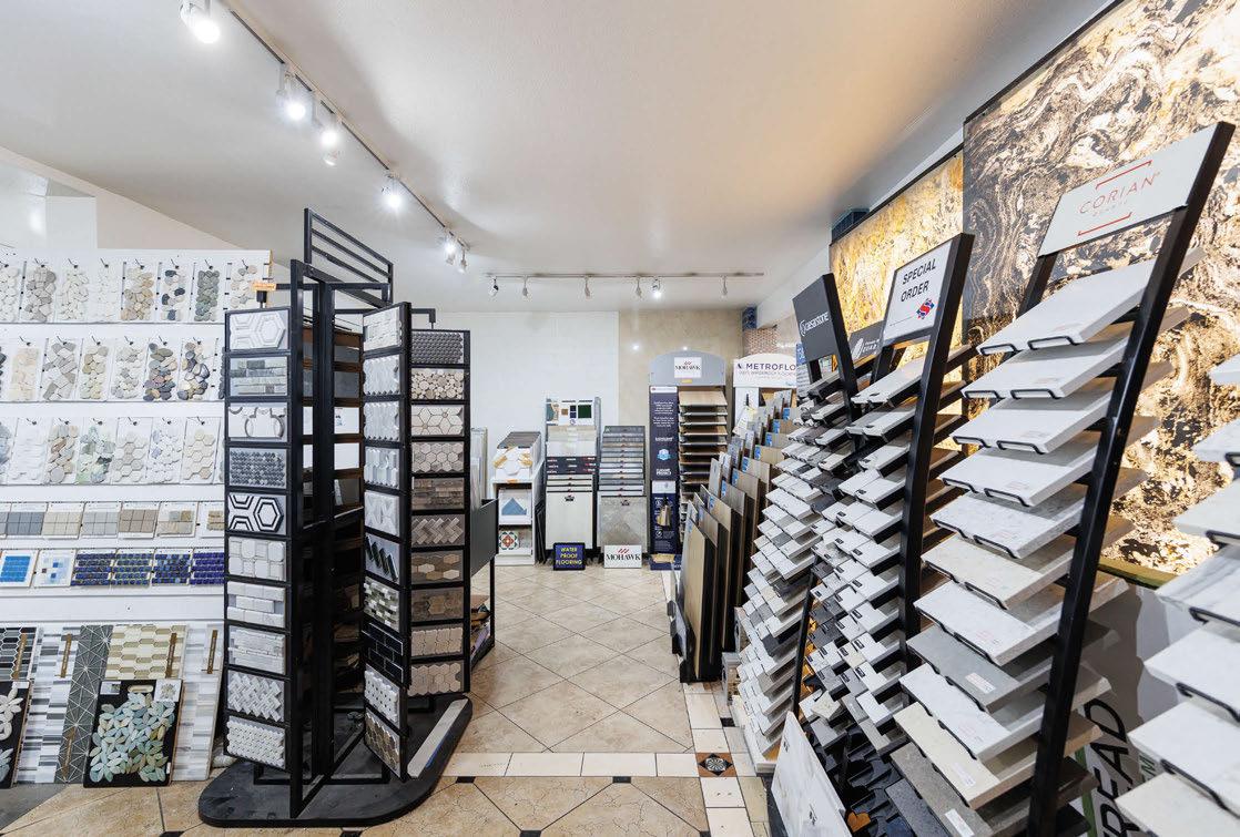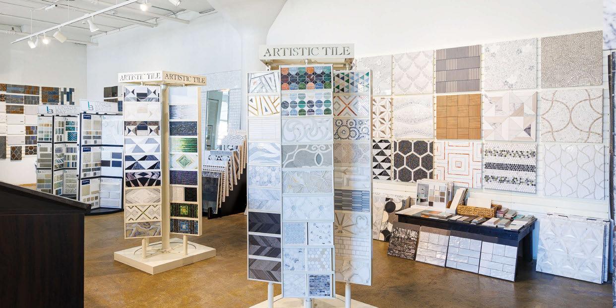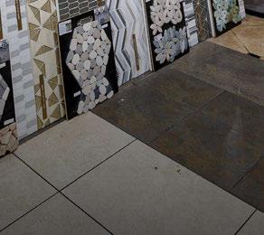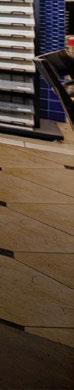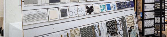 A colorful feature wall invites visitors to browse decorative tile for backsplashes, side-splashes, shower floors and accent walls. Nip and his sta can o er guidance on which tiles are best for nonskid surfaces, and which may require grout to create a desired look.
