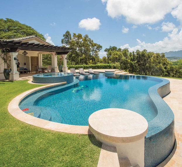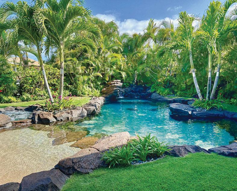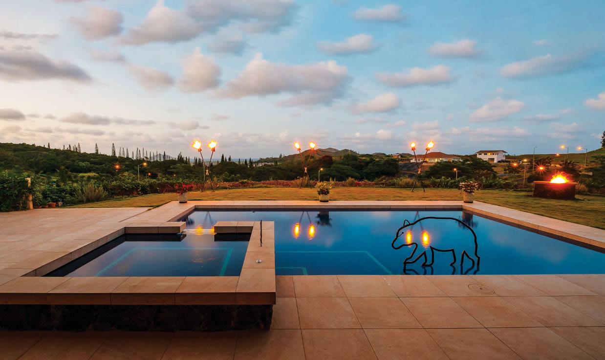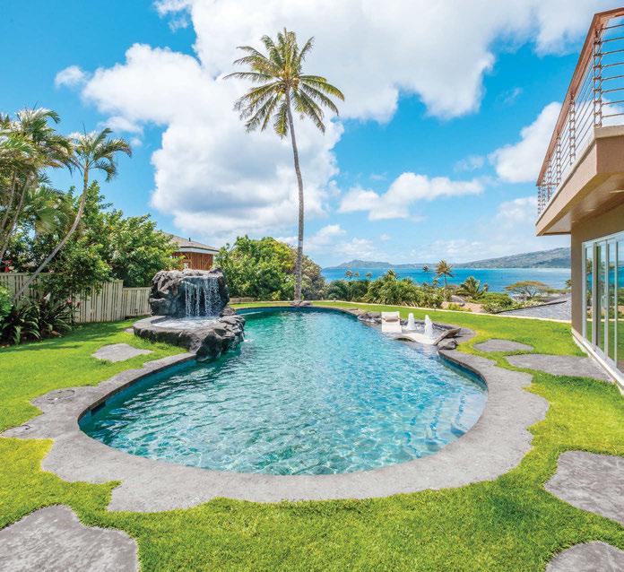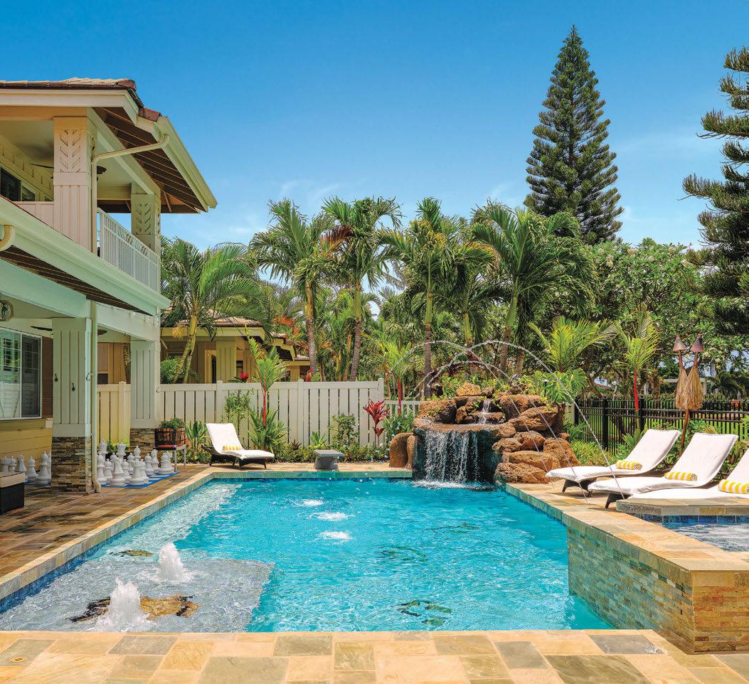 Backyard Bliss: Pacific Pool & Spa Designs with Wellness in Mind Clifton Crawford, the president and RME of Pacific Pool & Spa, brings his thoughtful pool and spa designs to Hawaii homeowners with a focus on building outdoor living spaces that decrease stress and promote healthy living. This Hawaii Kai home, for example, includes a soothing waterfall, refined tropical landscaping and artful details. The pool’s resortstyle Bali ledge, lounge chairs and bubblers make this a truly serene space. Contact Pacific Pool & Spa to bring your ideas to life.