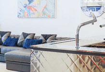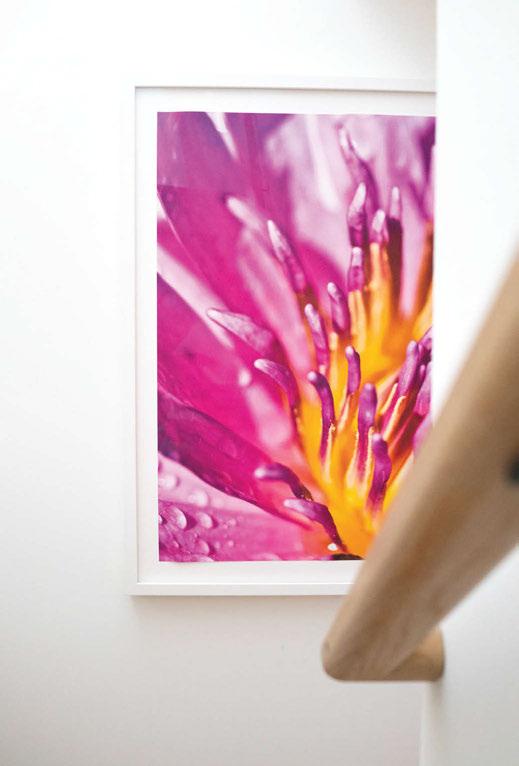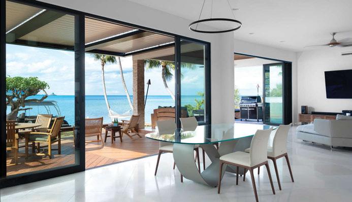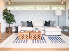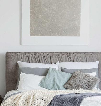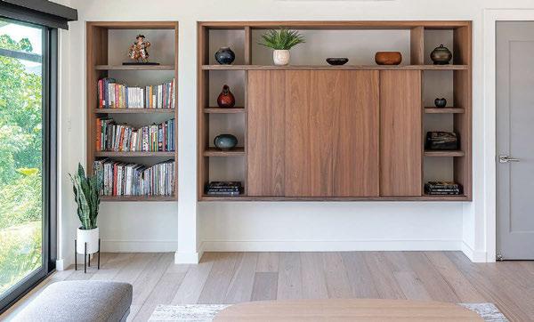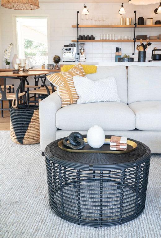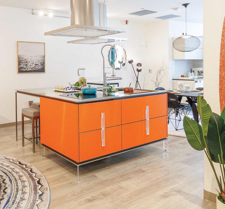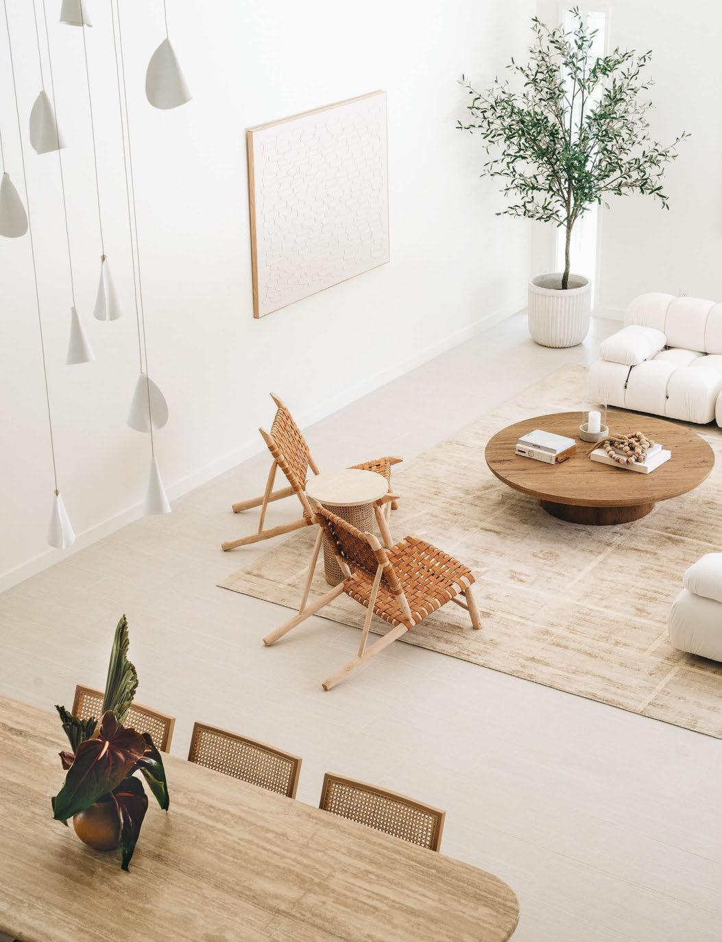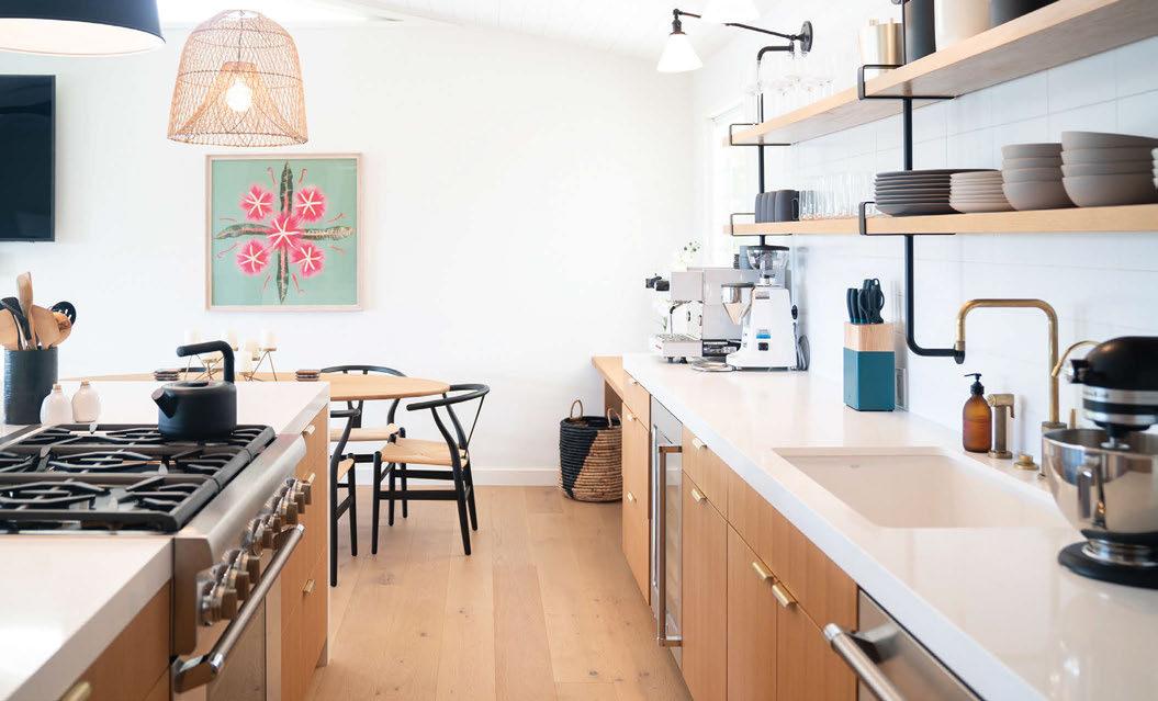 Key ingredients to resort-residential style include white and neutral-colored furnishings — “We always use fabrics that are easily bleachable and furniture that is modern yet durable,” says Johnson — that are contrasted by small pops of color, from art, decorations, plants, cushions and more. Moving appliances like microwaves, blenders and co ee machines into a “butler’s pantry” allows a kitchen to breathe and look more “resortrefined” as well.