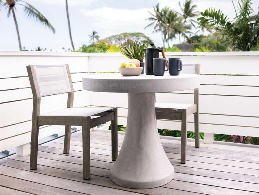 left: Curate refreshing spaces to enjoy the outdoors with durable, modern furniture for lounging, dining and entertaining.