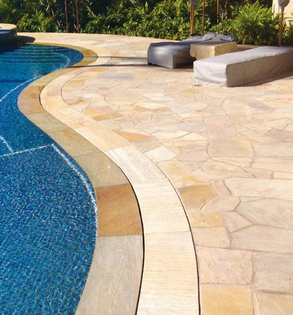 It’s all in the names: Noble Gold, Noble Green and Noble Pink. These elegant Brazilian quartzite lines available at Selective Stone instantly elevate any outdoor space. Composed of “crazy cut” natural quartzite flagstone in soft, earthy hues, Noble Gold, Noble Green and Noble Pink can create polished foundations to complete the look of your pool and deck. Quartzite flagstone is durable and able to withstand heavy foot tra c, pool chemicals and the weather. Contact Selective Stone to learn more.