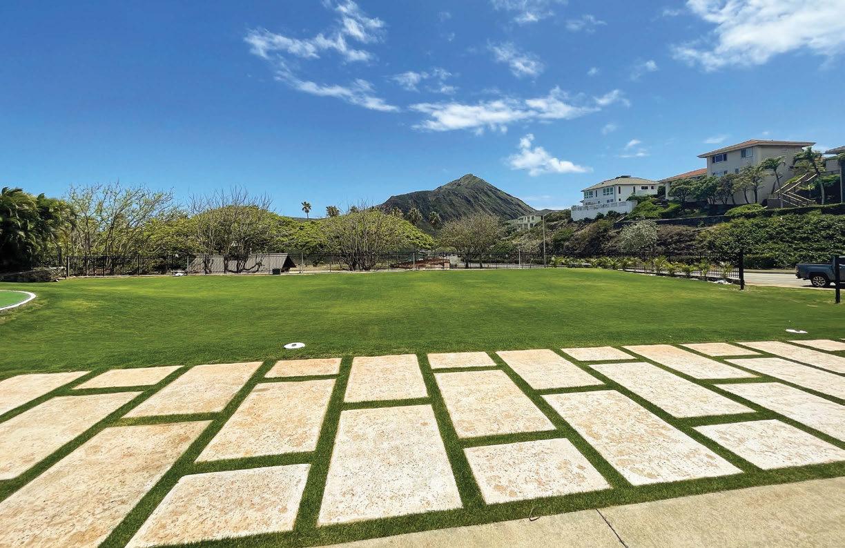 STORY BY DARLENE DELA CRUZ FEATURING HAWAIIAN TURFGRASSAn East Oahu ohana opted for Stadium Zoysia for this expansive yard. The turfgrass variety is attractive, drought-tolerant and sturdy enough to withstand the family’s many activities and gatherings.