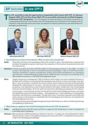 The AIP would like to take this opportunity to congratulate Sefah Usmani AAIP, CPP; Dr Johannes Bergmair MAIP, CPP and Shira Rosen MAIP, CPP on successfully achieving the Certified Packaging Professional (CPP) designation. The CPP program has been accepted as the global recognition as a packaging professional and therefore the CPP designation has now become the leading mark of excellence internationally and a must-have recognition of industry proficiency and achievement for packaging professionals.