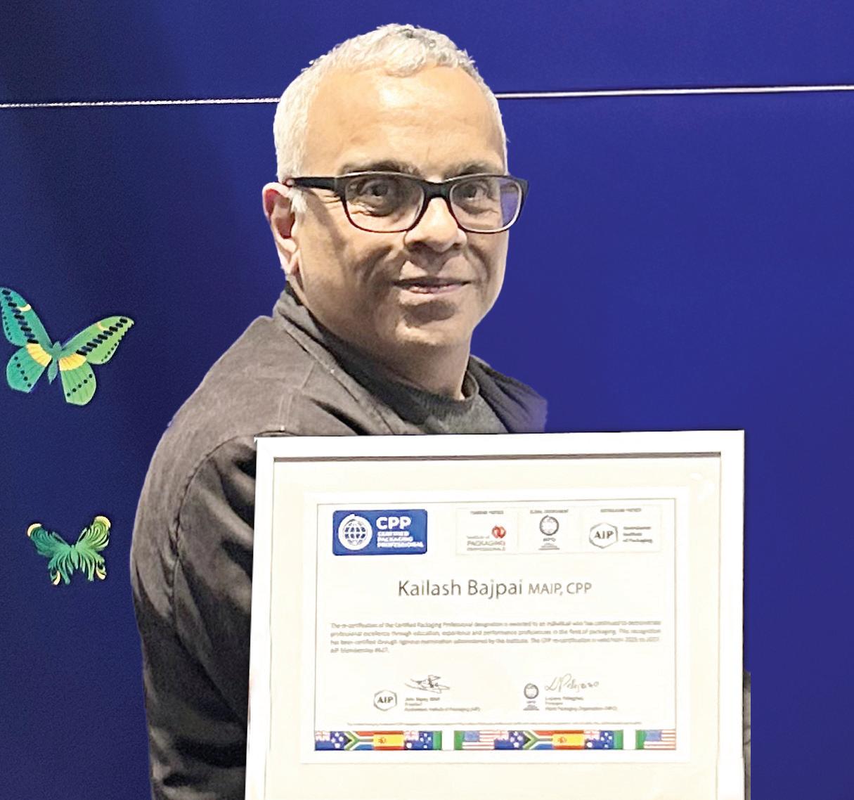 The AIP would like to take this opportunity to personally congratulate Kailash Bajpai MAIP, CPP for attaining his re-certification for the Certified Packaging Professional designation...