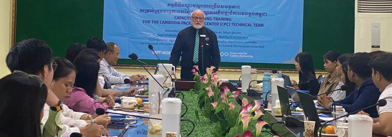 “The invitation to be part of this UNIDO and Cambodia Packaging Centre (CPC) project was a highlight of all my AIP training opportunities. The Cambodian people are the most courteous and humorous people I have ever met, in all my travels. I have not laughed as often, or for as long as I did through the whole week, and the credit is all theirs. The success of the week must go out to the local UNIDO team in Cambodia and the Cambodia Packaging Centre (CPC) staff. Two very special people that must be formally acknowledged for taking such great care of me, are Dr Borarin Buntong who heads up the CPC and Davin KIM, the National Project Coordinator for CAPFish. I hope to return to Cambodia as a part of a future AIP project and to help build capacity in such a beautiful country. The Kingdom of Cambodia is at a critical juncture for packaging development, and the AIP are ready to build capacity for the country.”