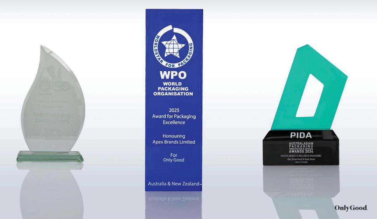 PIDA Gold Award (Sustainable Packaging Design), WPO Worldstar (Packaging Materials & Food)