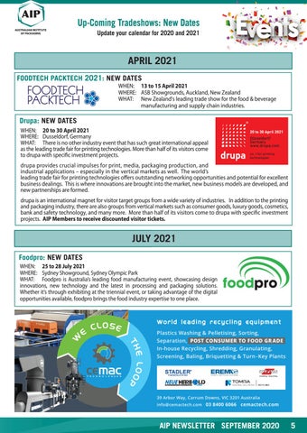 APRIL 2021 FOODTECH PACKTECH 2021: NEW DATES WHEN: 13 to 15 April 2021 WHERE: ASB Showgrounds, Auckland, New Zealand WHAT: New Zealand's leading trade show for the food & beverage manufacturing and supply chain industries.