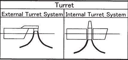 Las torretas pueden estar ancladas permanentemente o de forma ocasional, dependiendo de las condiciones meteorológicas, lo común es implantar un sistema permanente, salvo que la zona esté sometida a alta actividad de tifones, huracanes o la aparición de icebergs, en esos casos preservar la seguridad del buque, las operaciones y de la tripulación es recomendable el uso de sistemas desconectables, existen dos tipos de torretas, las internas y las externas tal como se muestran en la siguiente figura