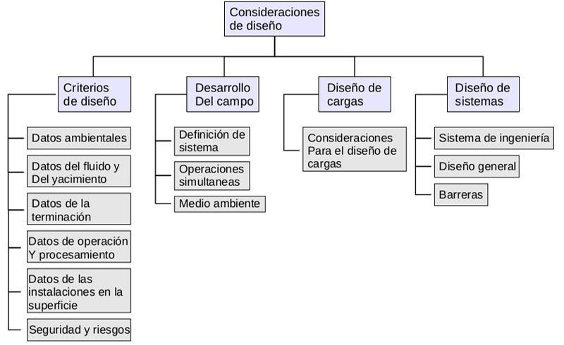 La misma fuente refiere una serie de recomendaciones, de amplio uso, en el diseño de infraestructuras submarinas para la explotación de hidrocarburos costa afuera; éstas se esquematizan a continuación: