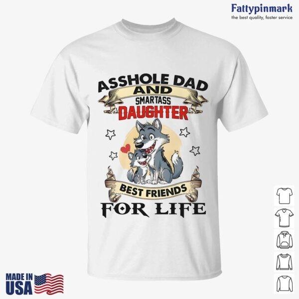 Show off the hilarious and heartwarming dynamic between dads and daughters with this “Asshole Dad and Smartass Daughter Best Friends For Life” wolf tshirt. This funny and unique design perfectly captures the playful banter and unbreakable bond shared between fathers and their daughters. Featuring a striking wolf graphic, this t-shirt is sure to turn heads. Made from soft and comfortable materials, it’s perfect for everyday wear. A great gift for dads and daughters who are best friends for life. Get yours today and celebrate your special connection! #DadDaughter #WolfShirt #FunnyTShirt #Family #BestFriends #Gift #Apparel #FatherDaughter #Smartass