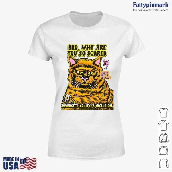 Bro Why Are You So Scared Diversity Equity And Inclusion T-shirt.The “Bro, Why Are You So Scared?” Diversity, Equity, and Inclusion T-shirt is more than just a shirt—it’s a conversation starter. Featuring a bold design that encourages people to reflect on their views about diversity and inclusion, this shirt promotes equality, understanding, and acceptance. Made from soft, breathable fabric, it’s comfortable for daily wear while making an impactful statement. Whether you’re attending social events, rallies, or simply running errands, this shirt sparks discussions on the importance of embracing all people, regardless of background or identity. Perfect for those who are passionate about creating a more inclusive world, it’s a great way to show your commitment to change. The shirt also makes a meaningful gift for anyone who values diversity and social equity.