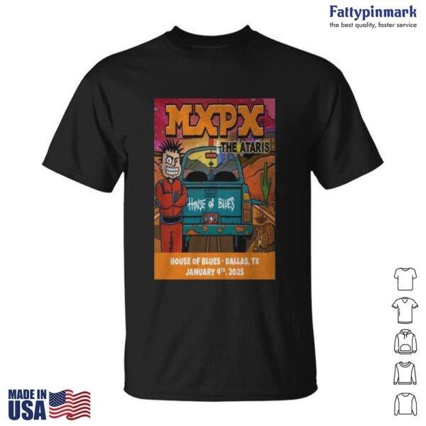 MXPX House Of Blues In Dallas TX Jan 4 2025 Tour Poster TShirt.Relive the energy of MXPX’s electrifying performance at House of Blues in Dallas, TX, on January 4, 2025, with this exclusive tour poster T-shirt. Featuring the unique design from the concert, this T-shirt captures the essence of the band’s unforgettable live show. Perfect for fans of MXPX and punk rock enthusiasts, this limited-edition shirt commemorates the high-energy atmosphere of one of the most iconic venues in Dallas. Made from soft, breathable fabric, it ensures all-day comfort, whether you’re rocking out at future concerts or enjoying casual outings. The bold graphic design reflects the punk rock spirit of MXPX, making it a standout piece in any wardrobe. Show your love for MXPX and their live performances by wearing this must-have souvenir. Don’t miss your chance to own this exclusive shirt. Order now and carry a piece of the January 4, 2025, show wherever you go!MXPX House Of Blues In Dallas TX Jan 4 2025 Tour Poster TShirt