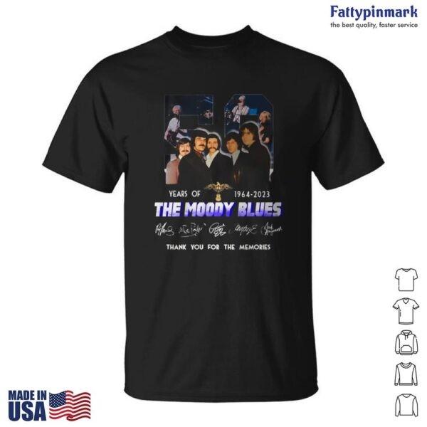 THE MOODY BLUES 59 YEARS OF 1964-2023 Round neck TShirts.Celebrate 59 years of The Moody Blues with this stylish 1964-2023 round neck t-shirt. Perfect for fans, this vintage-inspired shirt highlights the band’s iconic legacy. Made from comfortable fabric, it offers a timeless design to commemorate over half a century of legendary music.