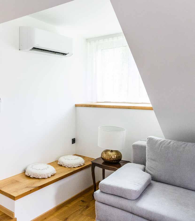 Für eine optimale Luftverteilung können bis zu vier Innengeräte kombiniert werden und je nach Wunsch den Raum kühlen oder heizen. Somit ist ein ganzjähriger Betrieb möglich.