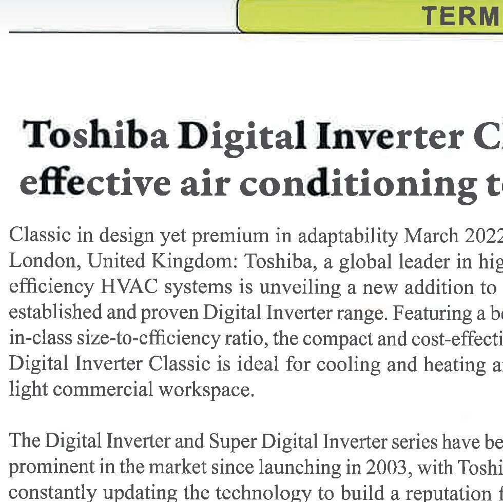 Toshiba, vodilni svetovni proizvajalec visoko učinkovitih sistemov HVAC, predstavlja nov dodatek k svoji uveljavljeni in preizkušeni seriji digitalnih inverterjev. Kompakten in stroškovno učinkovit digitalni inverter Digital Inverter Classic, ki ga odlikuje najboljše