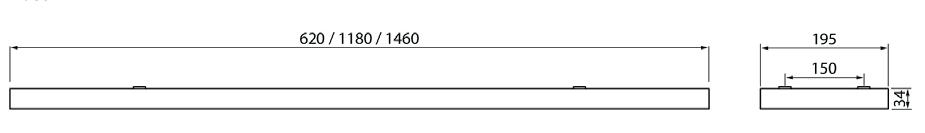 • Kiinteä led: 1572 x 95 mm: 33 W / 4800 lm. 1172 x 145 mm: 51 W / 8200 lm. 1452 x 145 mm: 71 W / 11 300 lm.