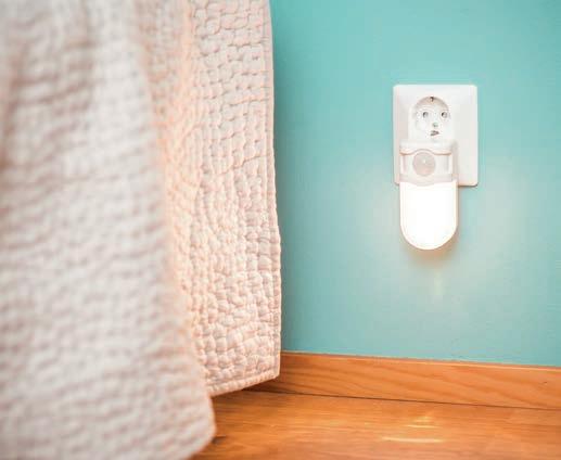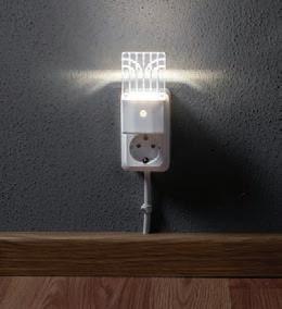 Hämärätunnistimella varustettu yövalo syttyy pimeässä automaattisesti, kun valo on kytketty pistorasiaan. Led-valon värisävy on lämmin valkoinen. Vähän tilaa vievä ja päivänvalossa lähes huomaamaton läpinäkyvän ja litteän valo-osan ansiosta.