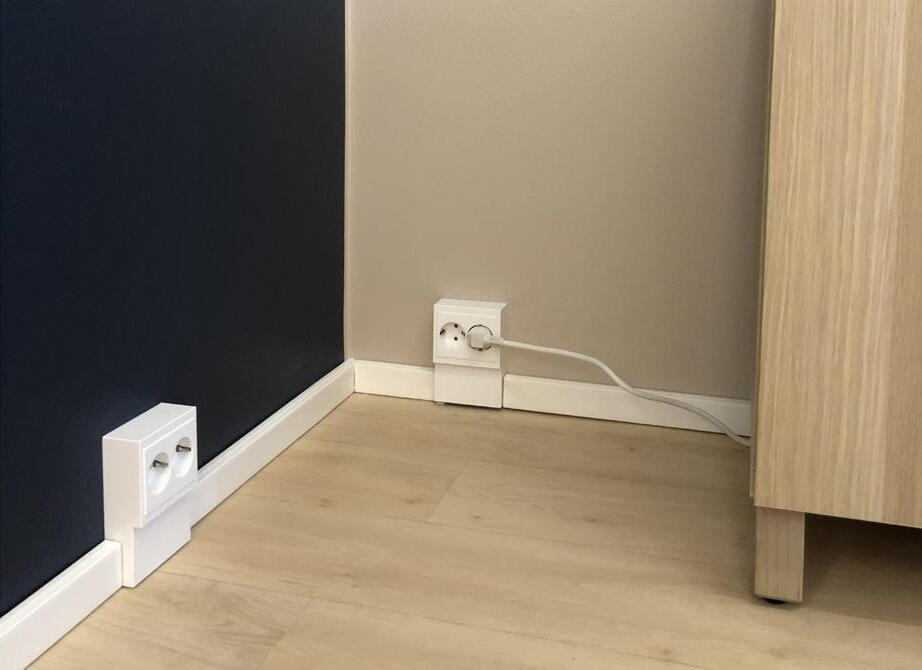 3-piece extension cord with an on/off switch and two USB ports, max. 2.1 A. Select the extension cord with a flat plug when the outlet is behind a large piece of furniture, such as a sofa or cabinet. The flat plug head doesn’t take up much space. You can place your furniture close to the wall and still have room to use the hidden outlet!