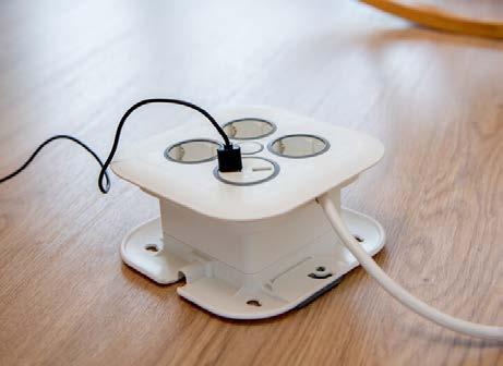 Desktop-mounted aluminium frame with four sockets and two USB ports, max. 2.1 A. Suitable for charging a tablet computer, for example. The package includes metal brackets for firmly attaching the charging point to the worktop. Available in two colours: black or white.