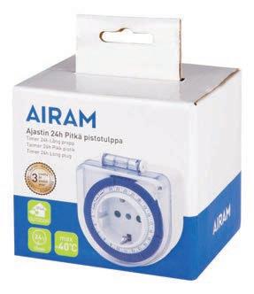 Timer suitable with a long plug for outdoor use. A long plug is good for deep sockets, which are often found in car heater poles, for example. 15-minute intervals. The timer has numerous applications, such as automatic timing of the car’s block heater or yard lights. Frost resistance up to -40 °C.