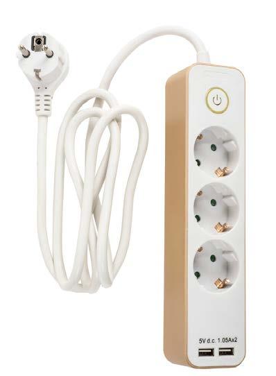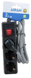 Jordade grenuttag med on-/off-brytare och kontrollampa. Sladdlängd från en meter till fem meter. Vita 3-, 4- eller 6-vägs grenuttag. De svarta grenuttagen är 3- eller 6-vägs. Urvalet omfattar även skojiga 3-vägs grenuttag i rosa och ljusblått.