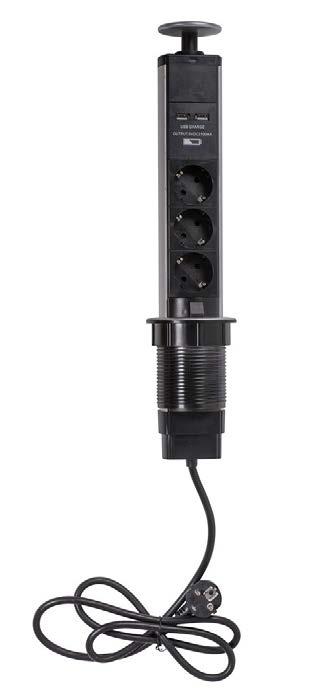 Grenuttag med platt och endast 7 mm djup stickpropp. Ett utmärkt val för ett vä uttag bakom en möbel. Stickproppens utfällbara draghandtag underlättar användningen. Valbar sladdlängd beroende på behovet. Urvalet omfattar versioner med tre eller fyra uttag. Finns även med brytare.